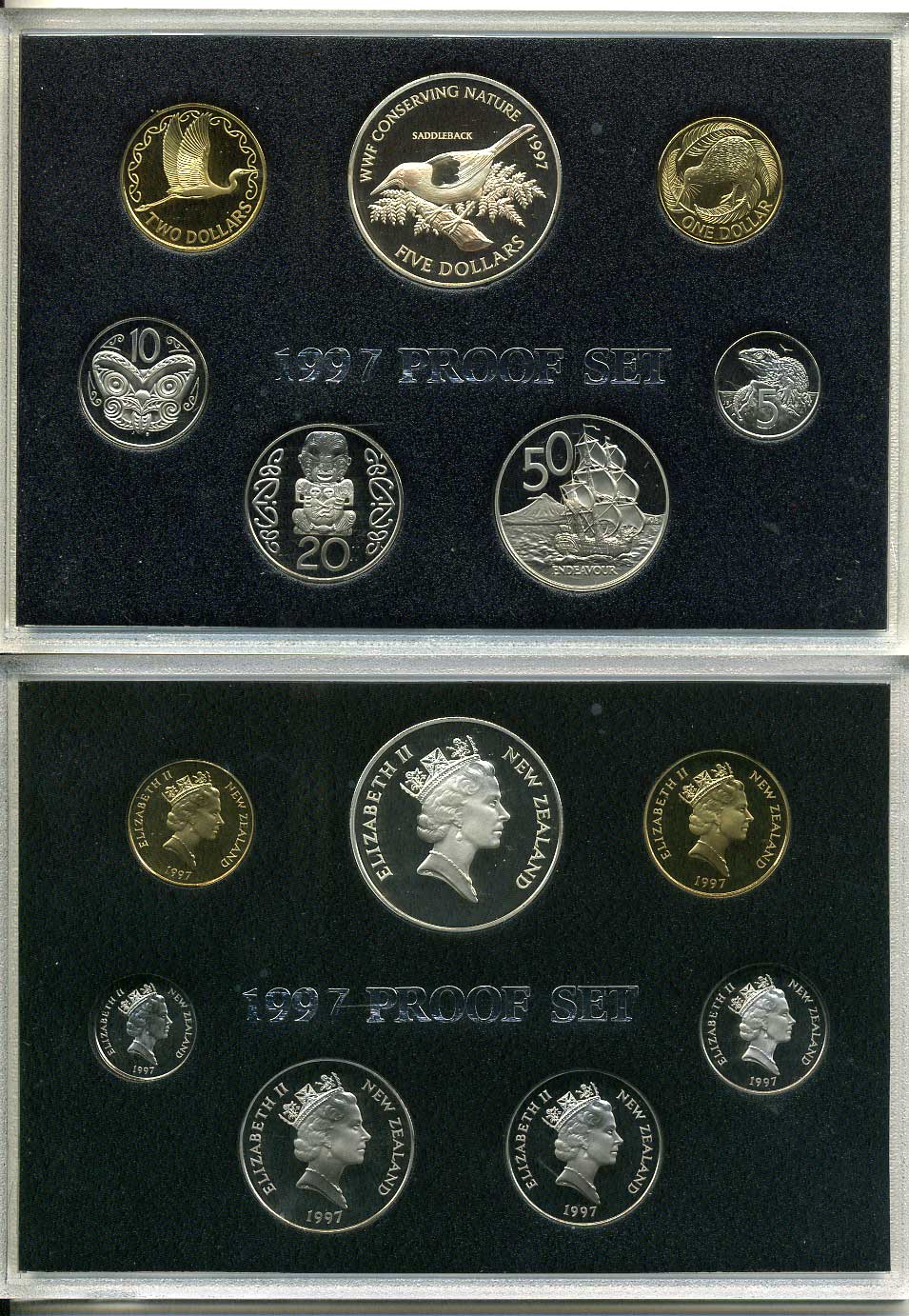 Новая Зеландия официальный набор из 7 монет 1997 тико (скворец, Saddleback) KM PS 40 серебро, медно-никель PROOF 5-4-1-42