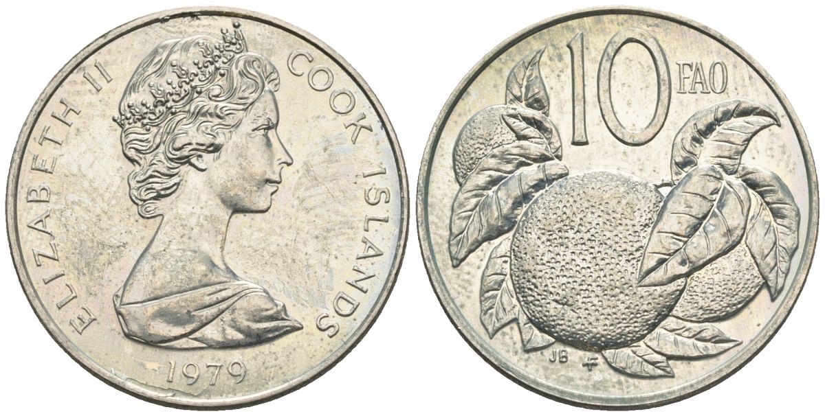 Острова Кука 10 центов 1979 Елизавета II (1952-2022), апельсин KM 4 медно-никель aUNC 85-445