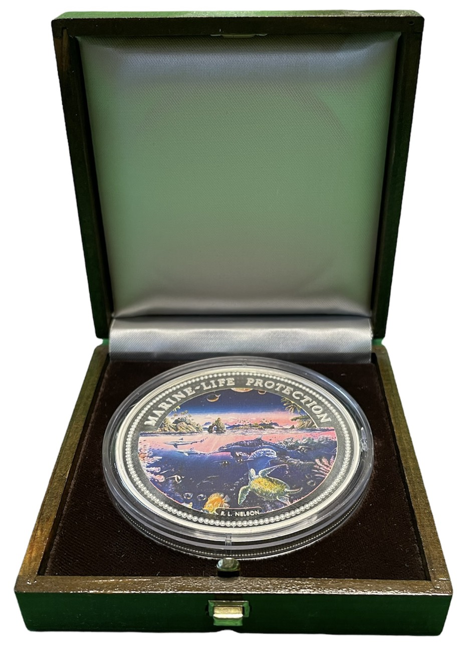 Палау 20 долларов 1994 водный мир Палау, цветная эмаль, 155 г., 5 унций тираж 3000 экз. KM 7 серебро PROOF 4-3-2-26