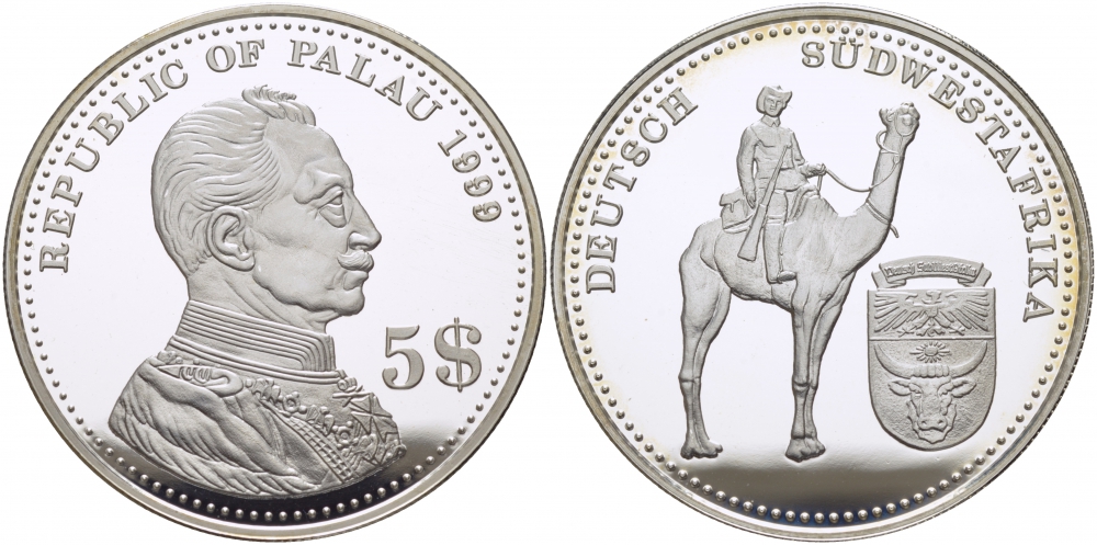 Палау 5 долларов 1999 немецкие колонии, Юго-Западная Африка KM 23 серебро PROOF 1077-9-62