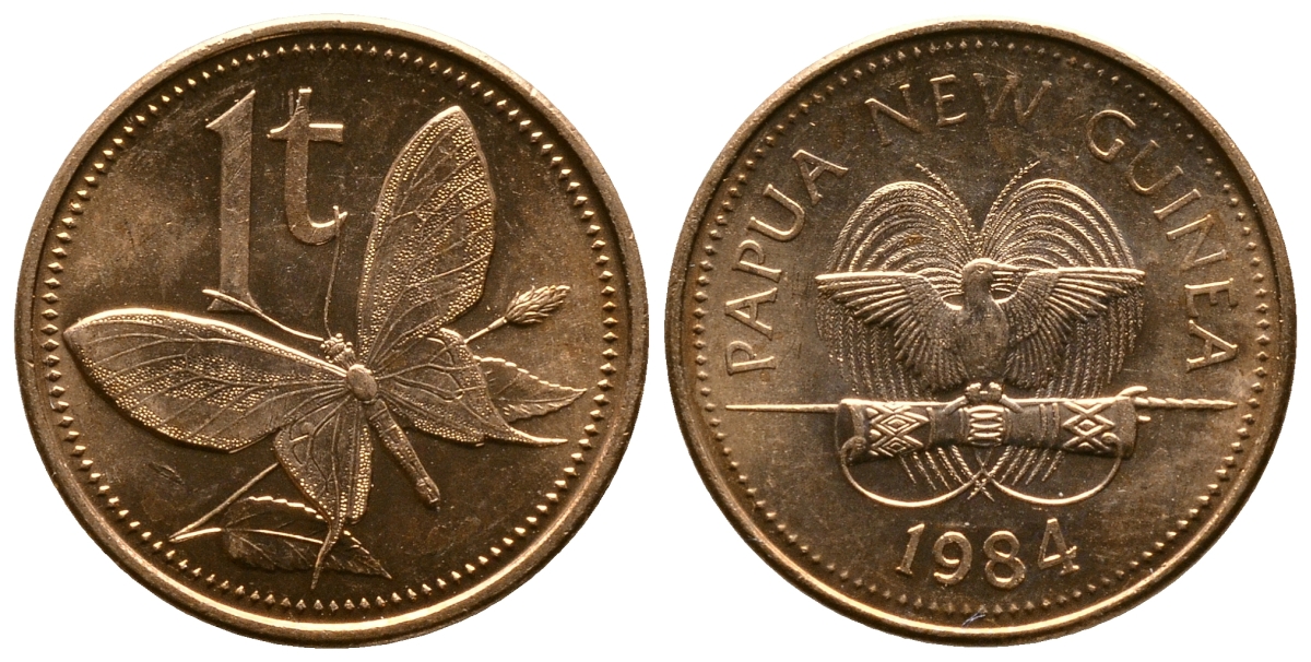 Папуа-Новая Гвинея 1 тойя 1984 бабочка KM 1 бронза UNC 261-512