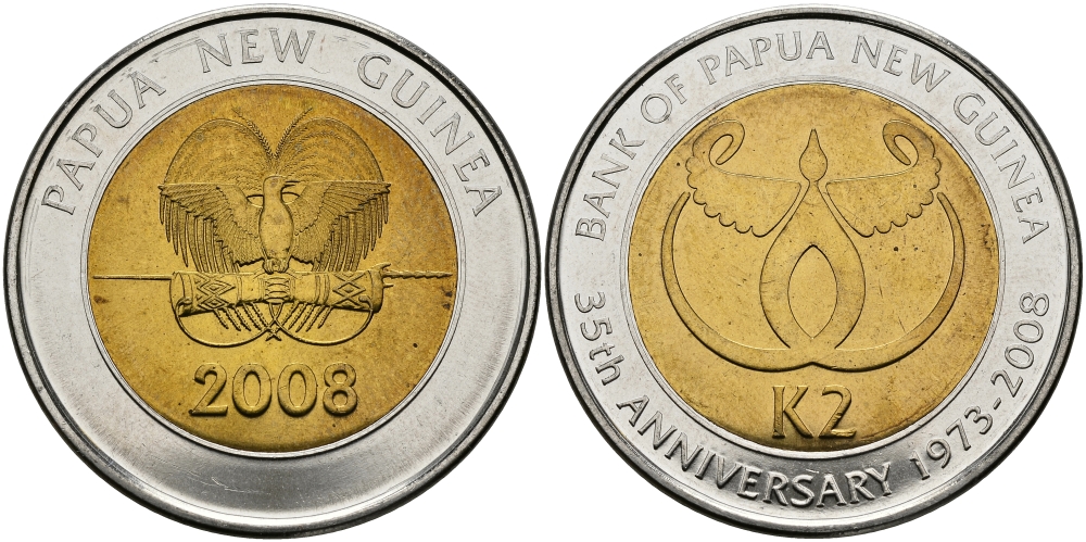 Папуа-Новая Гвинея 2 кина 2008 35 лет Центральному банку Папуа-Новой Гвинеи KM 51 биметалл UNC M45-09