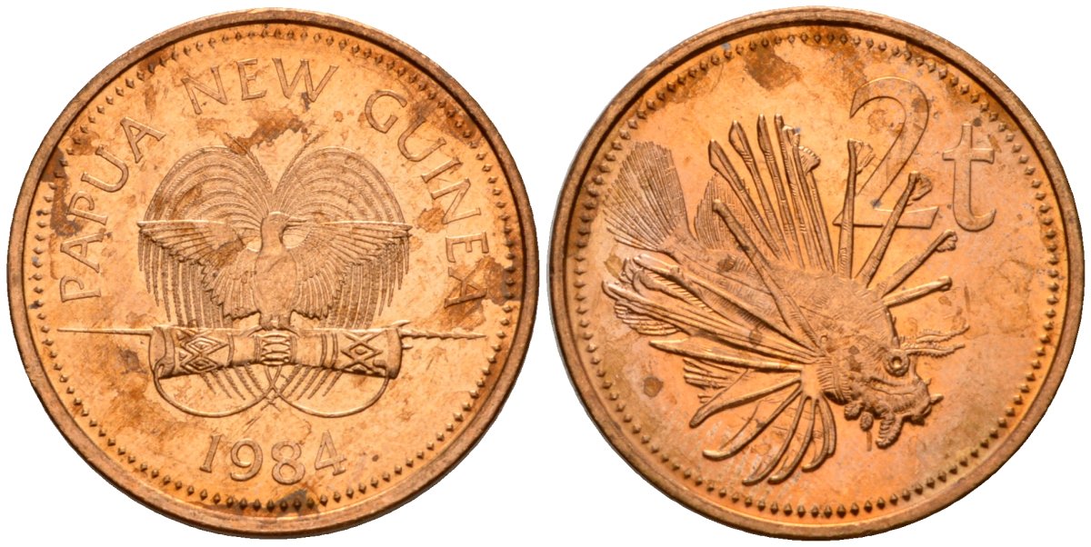 Папуа Новая Гвинея 2 тойя 1984 Елизавета II (1953-) KM 2 бронза 4187-1215