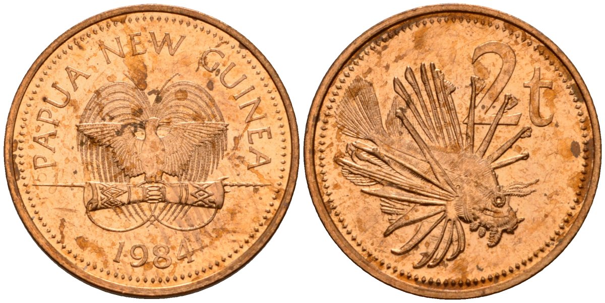 Папуа-Новая Гвинея 2 тойя 1984 Елизавета II (1953-) KM 2 бронза 4563-234