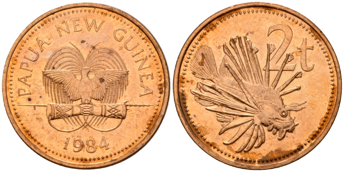 Папуа-Новая Гвинея 2 тойя 1984 Елизавета II (1953-) KM 2 бронза 4571-421