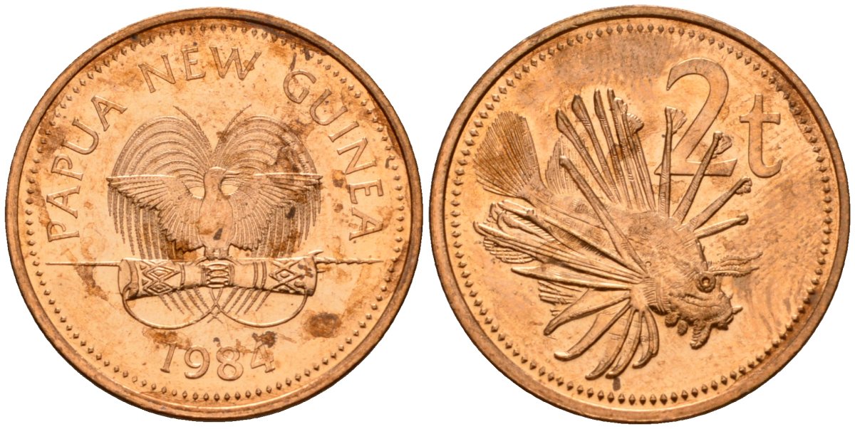 Папуа-Новая Гвинея 2 тойя 1984 Елизавета II (1953-) KM 2 бронза 4571-641