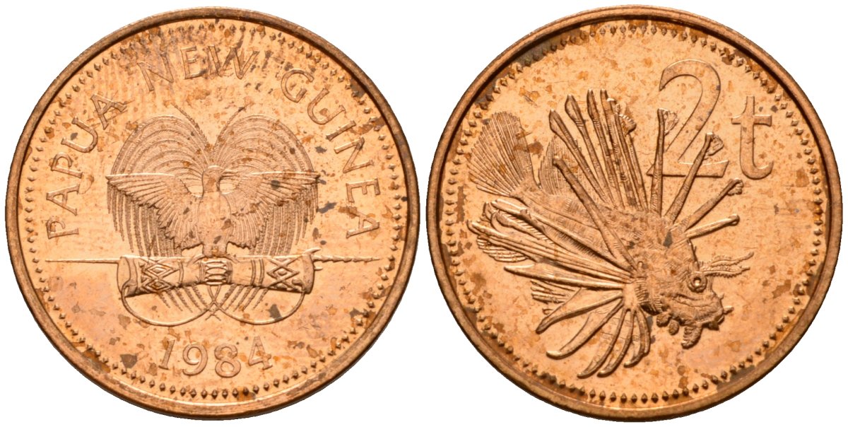 Папуа-Новая Гвинея 2 тойя 1984 Елизавета II (1953-) KM 2 бронза 4573-1221
