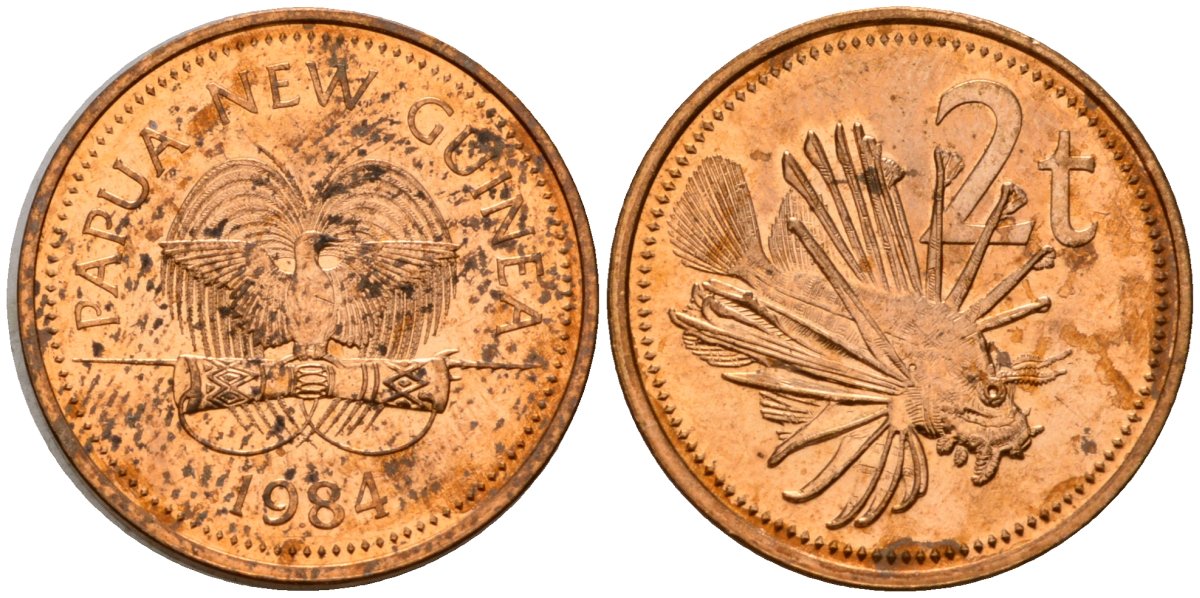 Папуа-Новая Гвинея 2 тойя 1984 Елизавета II (1953-) KM 2 бронза 4573-511