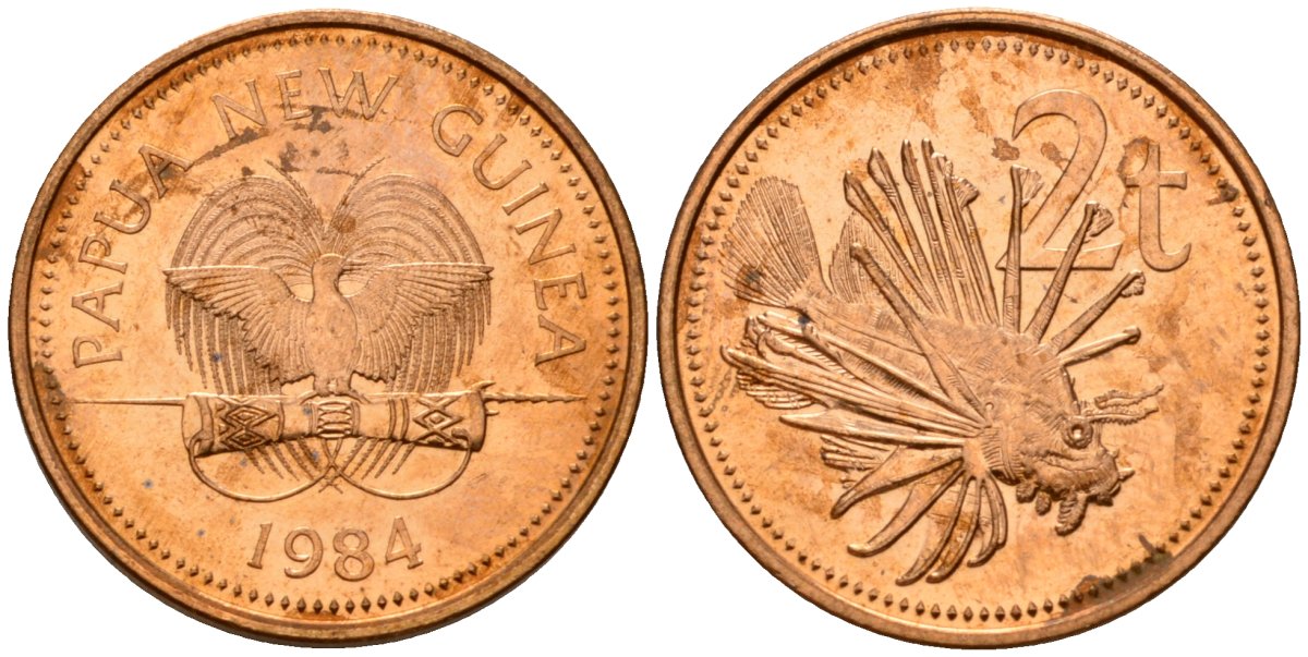 Папуа-Новая Гвинея 2 тойя 1984 Елизавета II (1953-) KM 2 бронза 4573-555