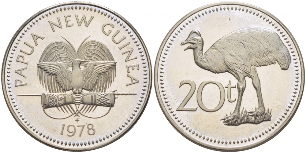 ПАПУА НОВАЯ ГВИНЕЯ 20 ТОЭ 1978 СТРАУС KM 5 медно-никель UNC 3457-442