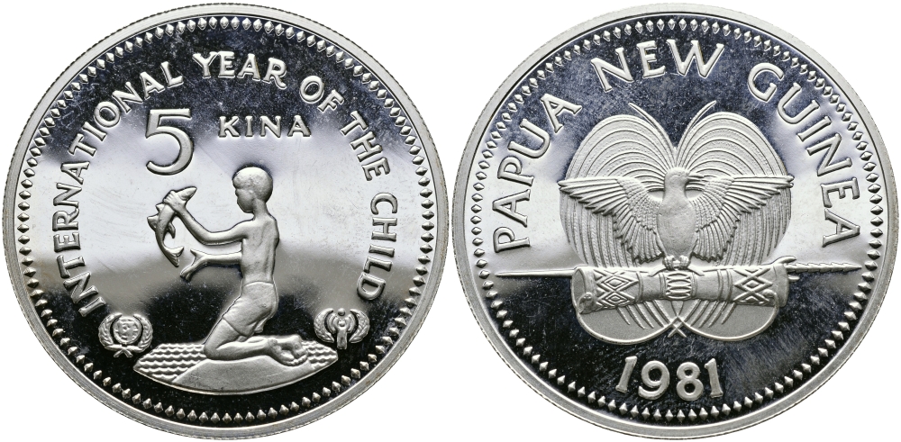 ----Папуа-Новая Гвинея 5 кина 1981 международный год детей KM 18 серебро PROOF 04-315-42