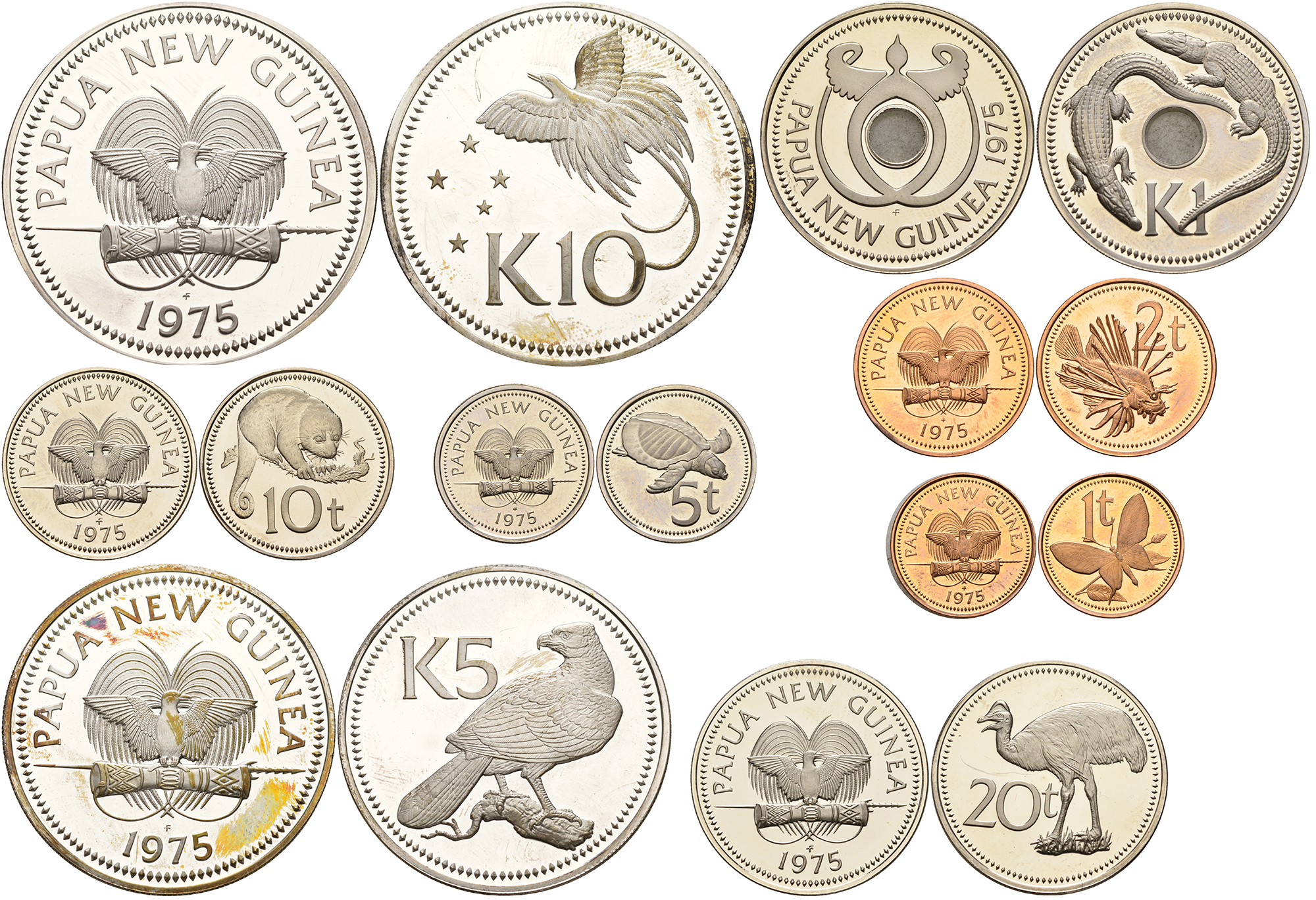 Папуа-Новая Гвинея набор из 8 монет 1975 официальный набор в оригинальной коробке, с сертификатом, тираж 42340 экземпляров KM PS1, KM 1-6,7a, 8a PROOF 14-01-04-09