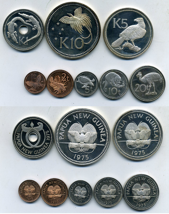 Папуа-Новая Гвинея набор из 8 монет 1975 животные, в оригинальной коробке KM PS 1, KM (1-6, 7a, 8a) серебро PROOF 2-6-3-02
