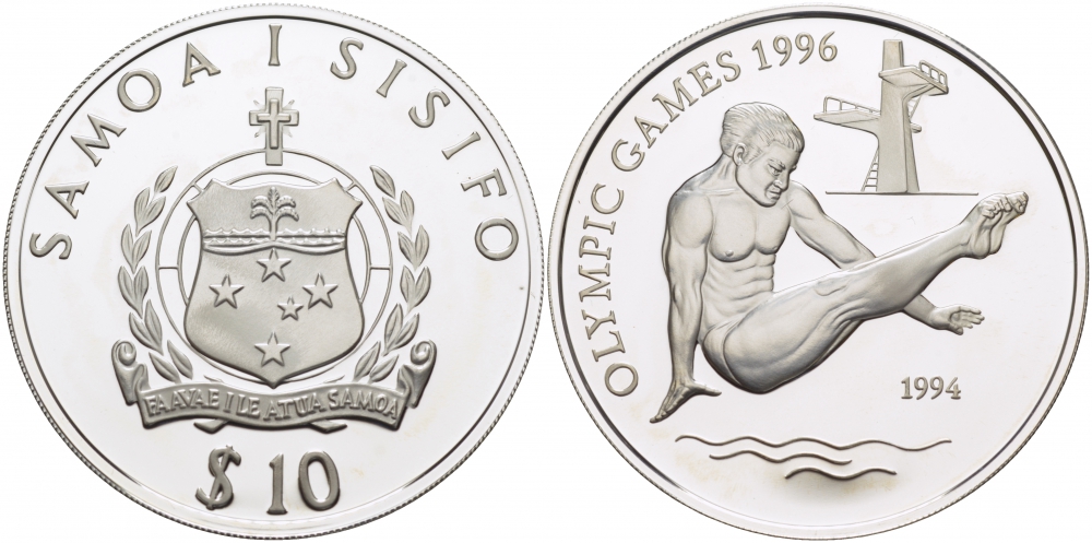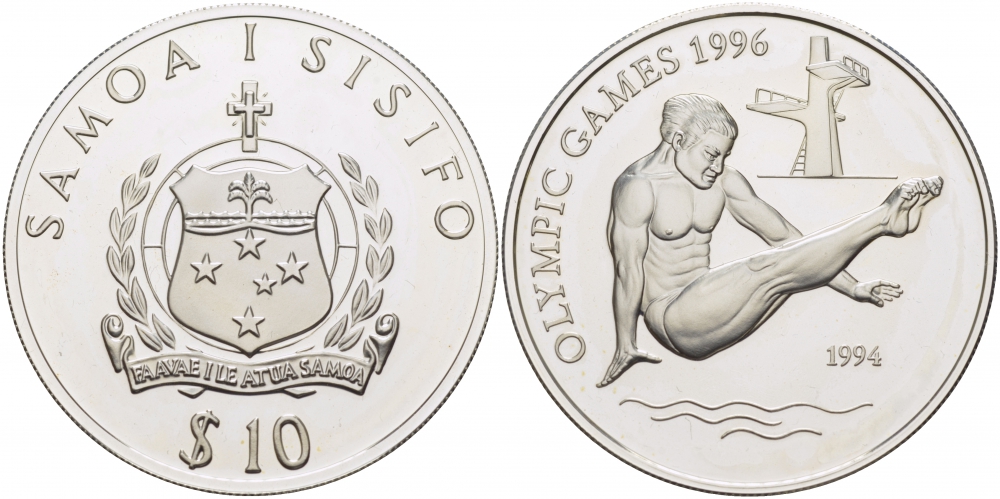 Самоа 10 тала 1994 летние Олимпийские игры 1996 года в Атланте, прыжки в воду KM 91 серебро PROOF 11-101-14