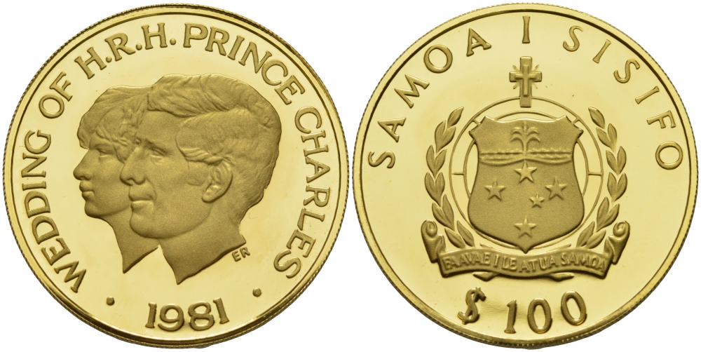 Самоа 100 тала 1981 свадьба леди Дианы и принца Чарльза KM 45 золото PROOF 00-805-09
