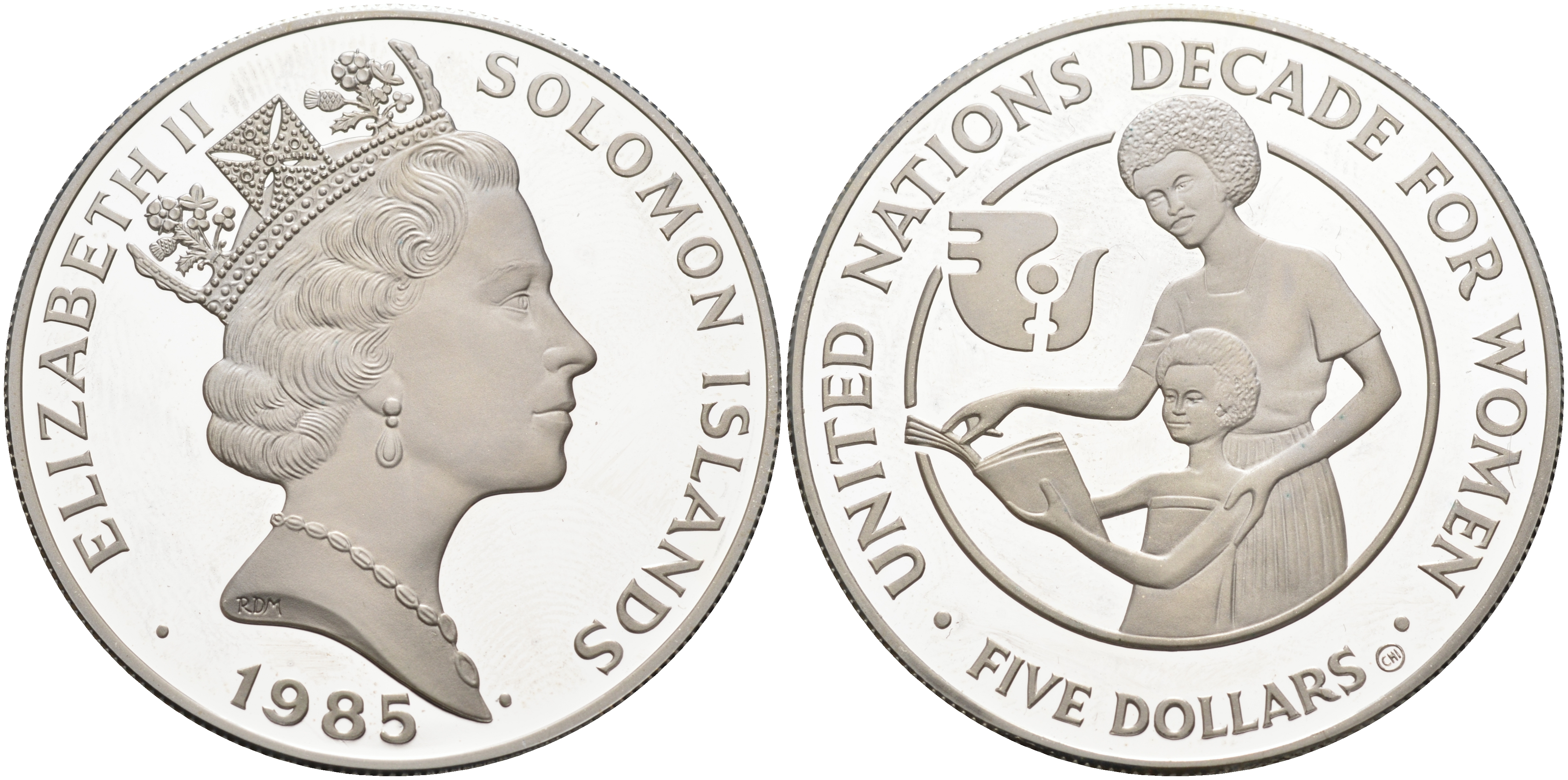Соломоновы острова 5 долларов 1985 Международный год женщин KM 22 серебро PROOF 11-267-12