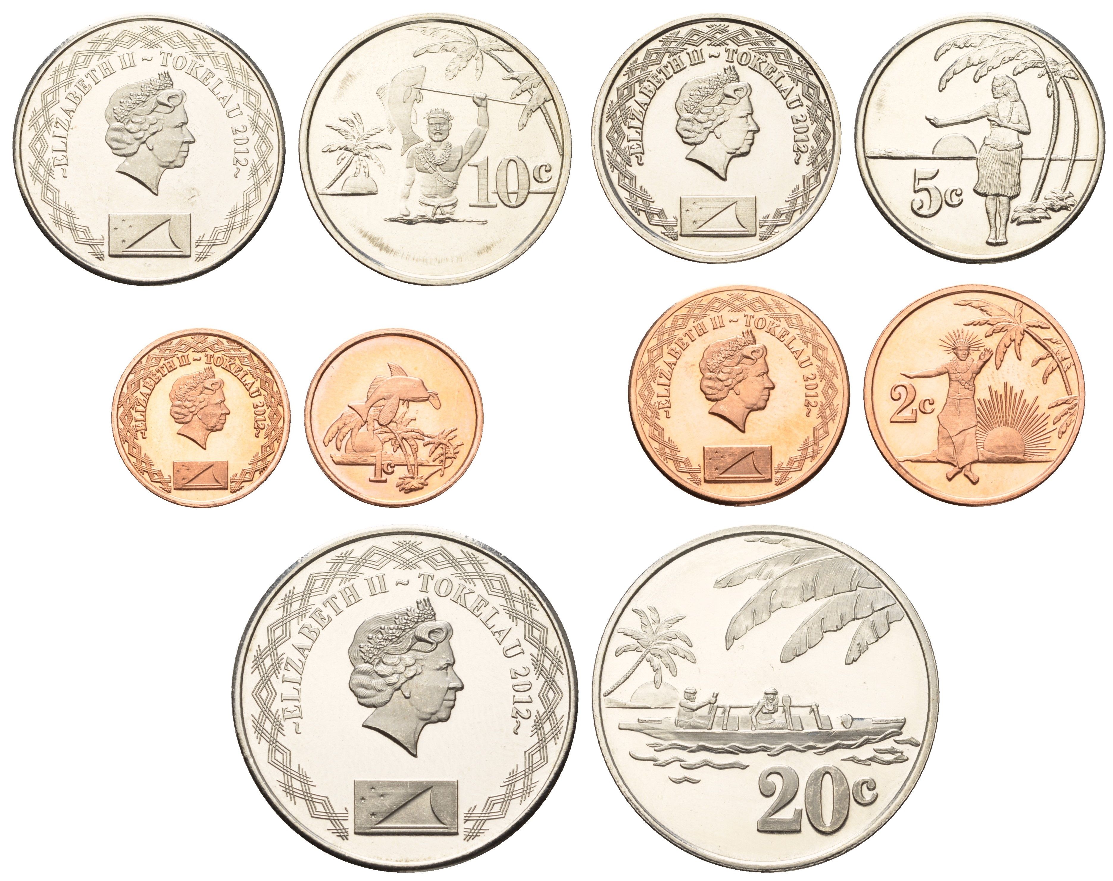 Токелау годовой набор из 5 монет (1, 2, 5, 10 и 20 центов) 2012 год-тип KM 100, 101, 102, 103 и 104 UNC 00-00