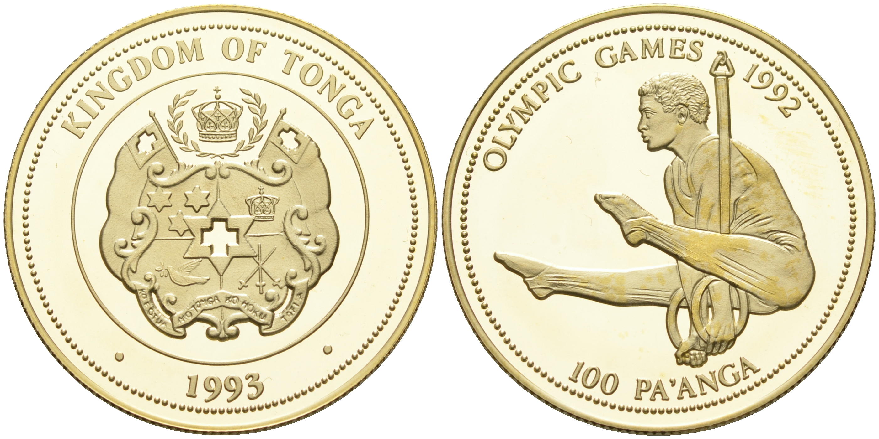 Тонга 100 паанга 1993 Олимпийские игры 1992 года, гимнаст, тираж 3000 экземпляров KM 155 золото PROOF 00-808-24