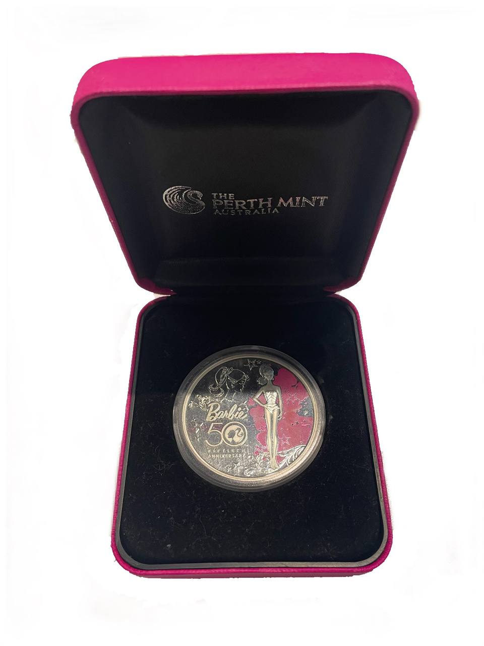 Тувалу 1 доллар 2009 50 лет кукле Барби, в оригинальной коробке KM 80 серебро PROOF 7-5-2-11