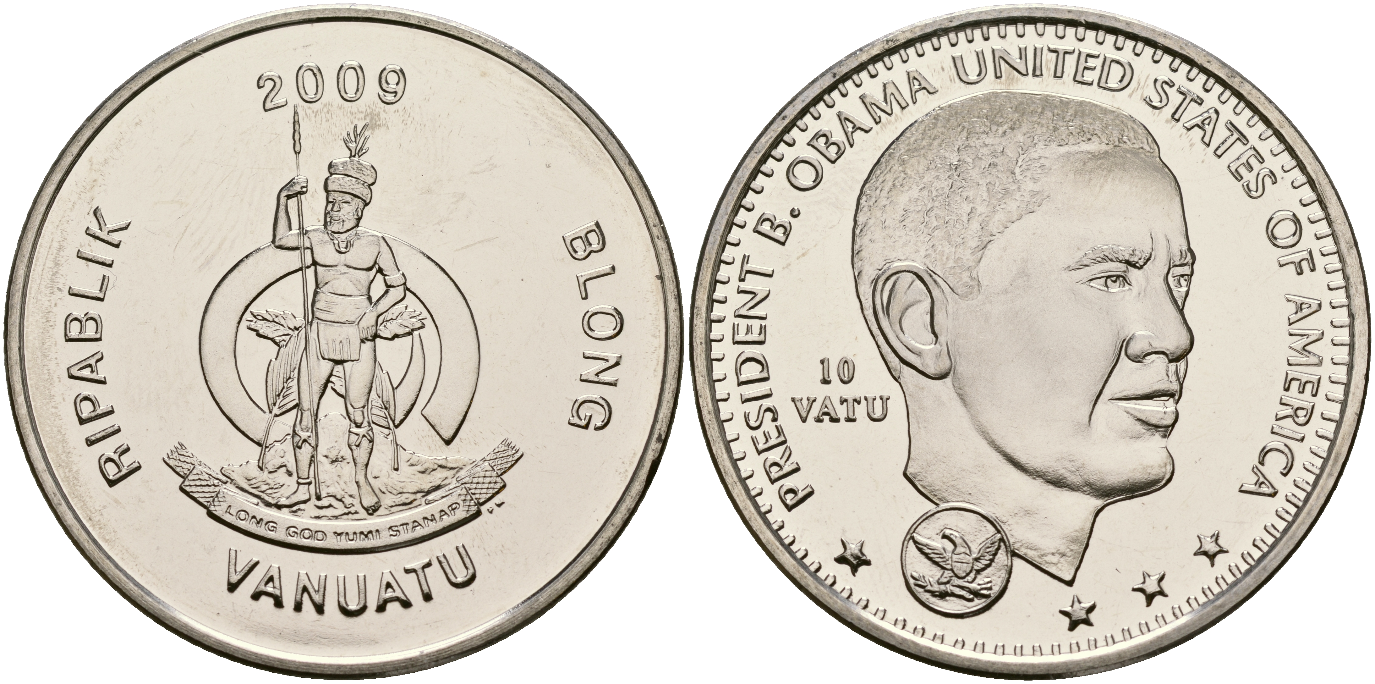 Вануату 10 вату 2009 президент Обама KM NEW медно-никель UNC 118-315