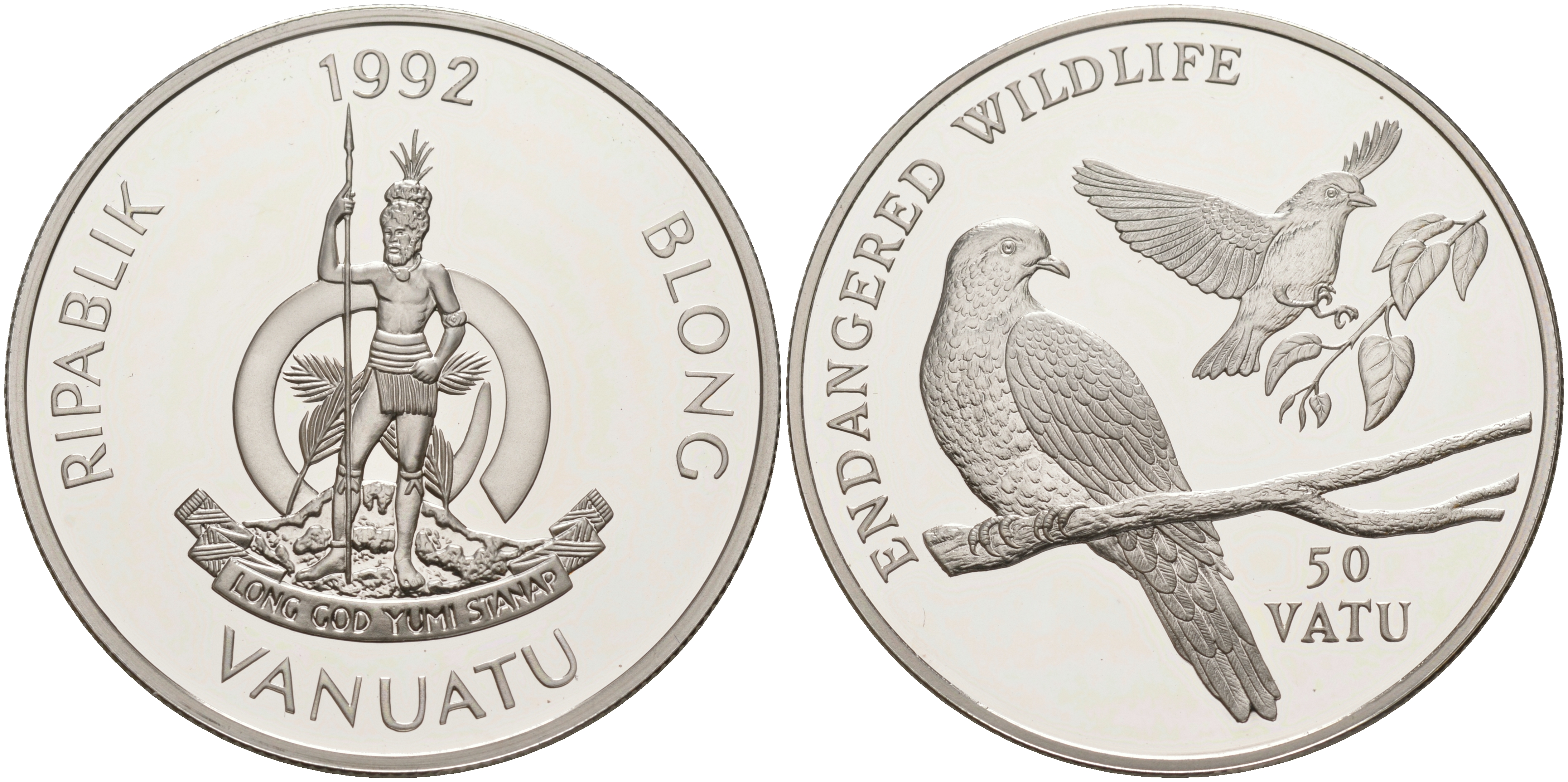 Вануату 50 вату 1992 серия охрана окружающей среды, птицы на ветке KM 13 серебро PROOF 1074-3-34