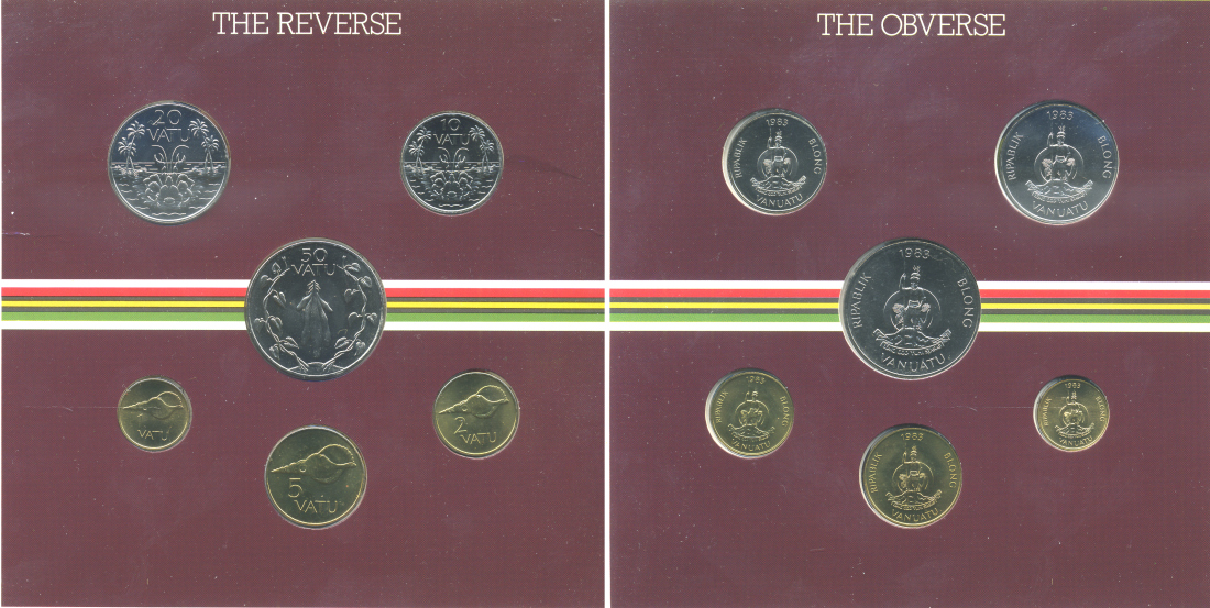 ВАНУАТУ НАБОР ИЗ 6 МОНЕТ 1983 1, 2, 5, 10, 20, 50 ВАТУ, В ОРИГИНАЛЬНОМ КАРТОННОМ БУКЛЕТЕ, ИЗГОТОВИТЕЛЬ КОРОЛЕВСКИЙ МОНДВОР АНГЛИИ BUNC 00-00