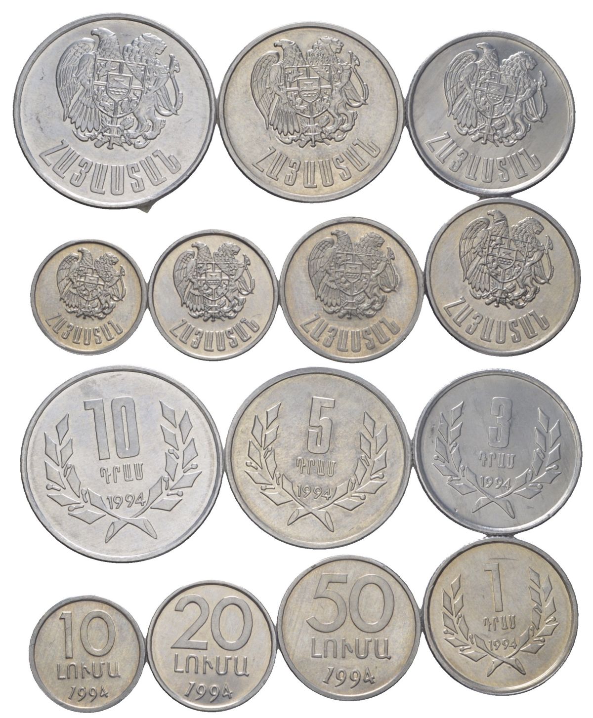 Армения годовой набор из 7 монет (10, 20 и 50 лум; 1, 3, 5 и 10 драмов) 1994 KM 51, 52, 53, 54, 55, 56 и 58 алюминий UNC 4624-831-837