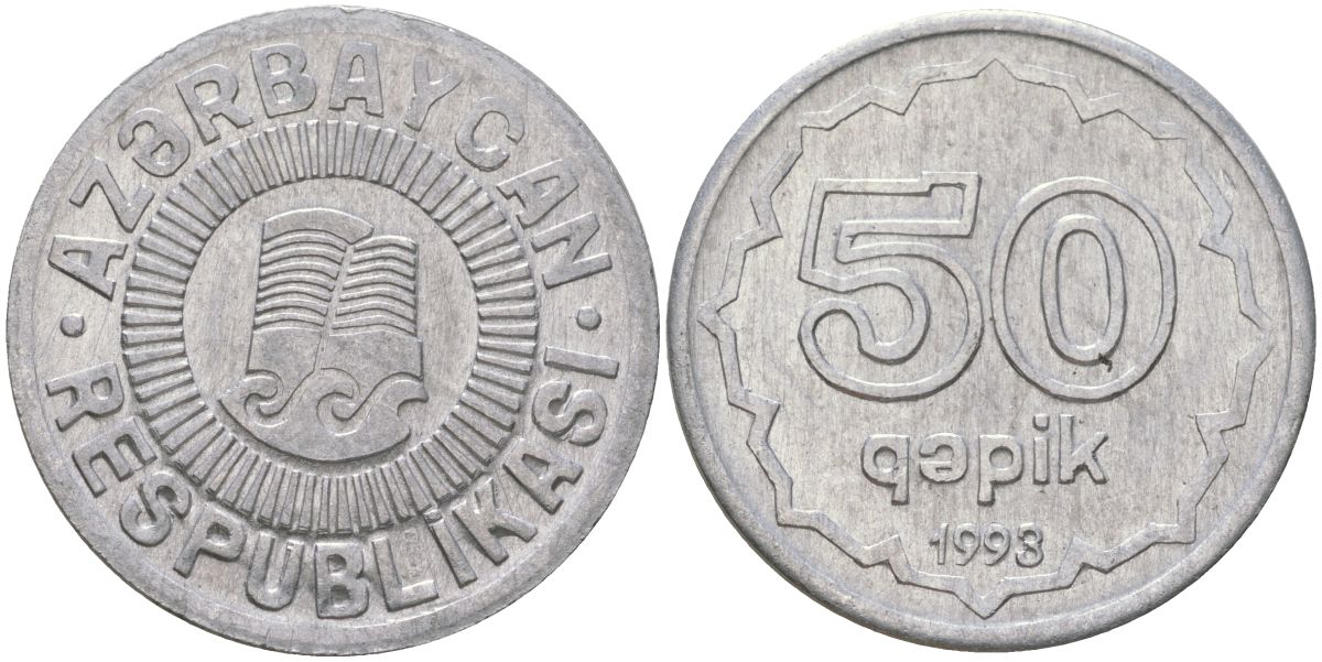 Азербайджан 50 гяпиков 1993 KM 4a алюминий 4584-911