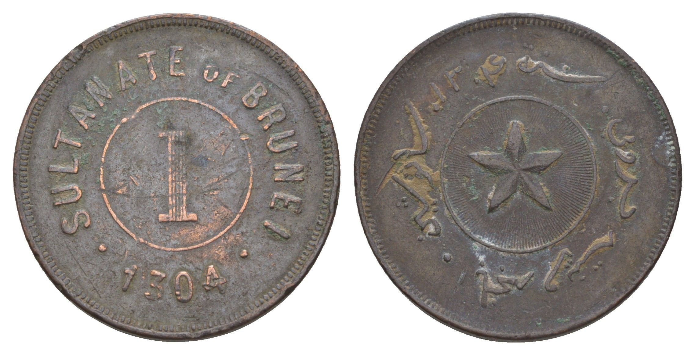 Бруней 1 сен 1887 AH 1304, год-тип KM 3 медь 1519-911