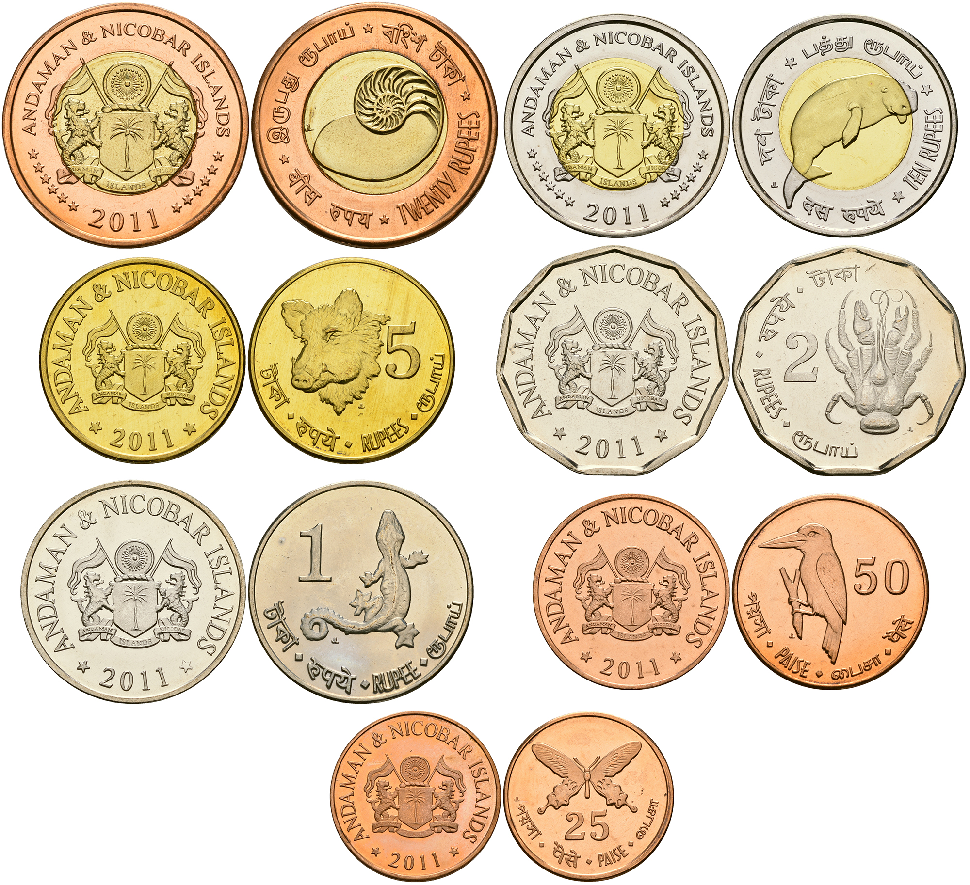 Андаманские и Никобарские острова набор из 7 монет 2011 животные, две монеты биметалл UNC N2-30