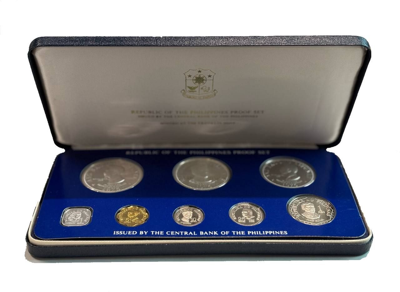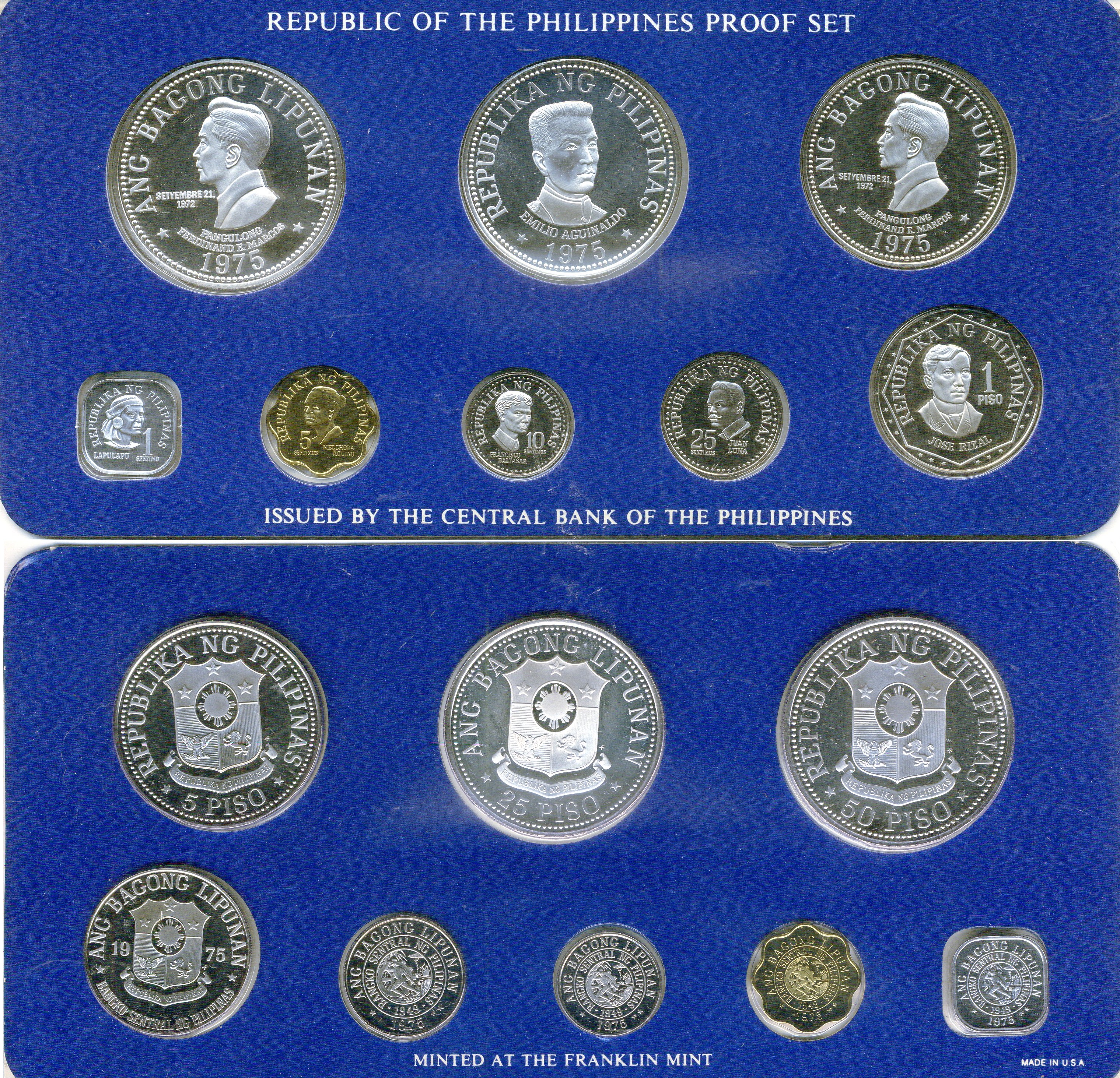 Филиппины набор из 8 монет (1, 5, 10 и 25 сентимо; 1, 5, 25 и 50 писо) 1975 Эмилио Агинальдо, Третья годовщина Нового Общества, в оригинальной упаковке, с сертификатом подлинности KM 205, 206, 207, 208, 209.1, 210.1, 211 и 212 PROOF 4-3-1-20