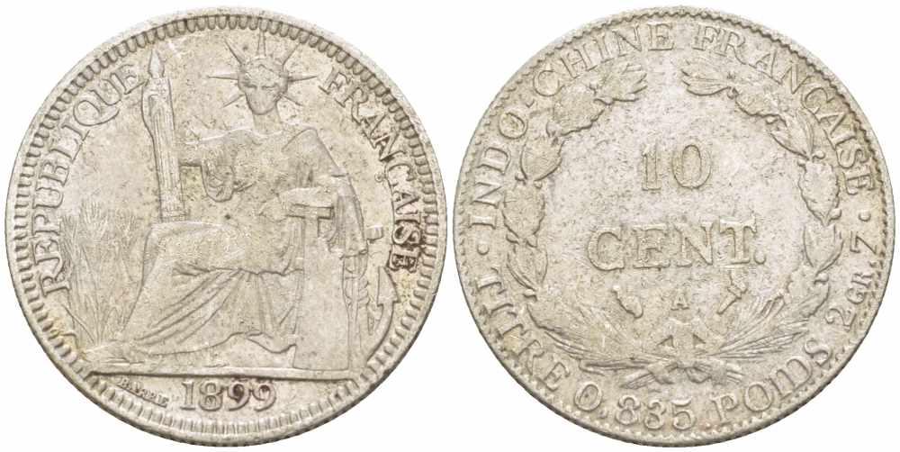 Французский Индокитай 10 центов 1899 KM 9 серебро 105-452
