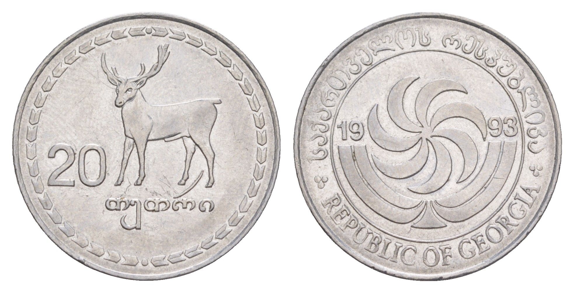 Грузия 20 тетри 1993 KM 80 нержавеющая сталь 4650-455