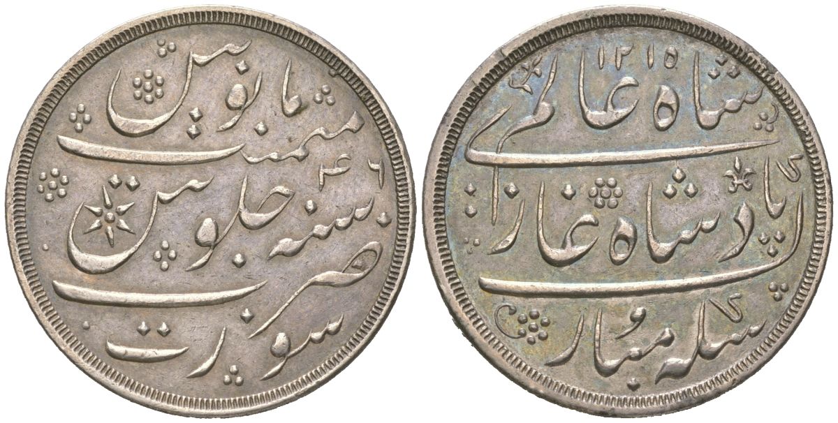 Британская Индия, Бомбейское президентство 1 рупия 1832 AH 1215, Шах Алам II KM 224 серебро 63-535