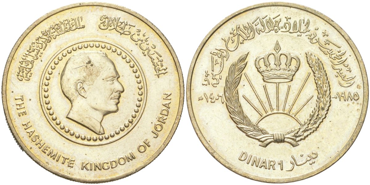Иордания 1 динар 1985 50 лет со дня рождения Короля Хусейна ибн Талала KM 47 никель бронза aUNC 4162-644