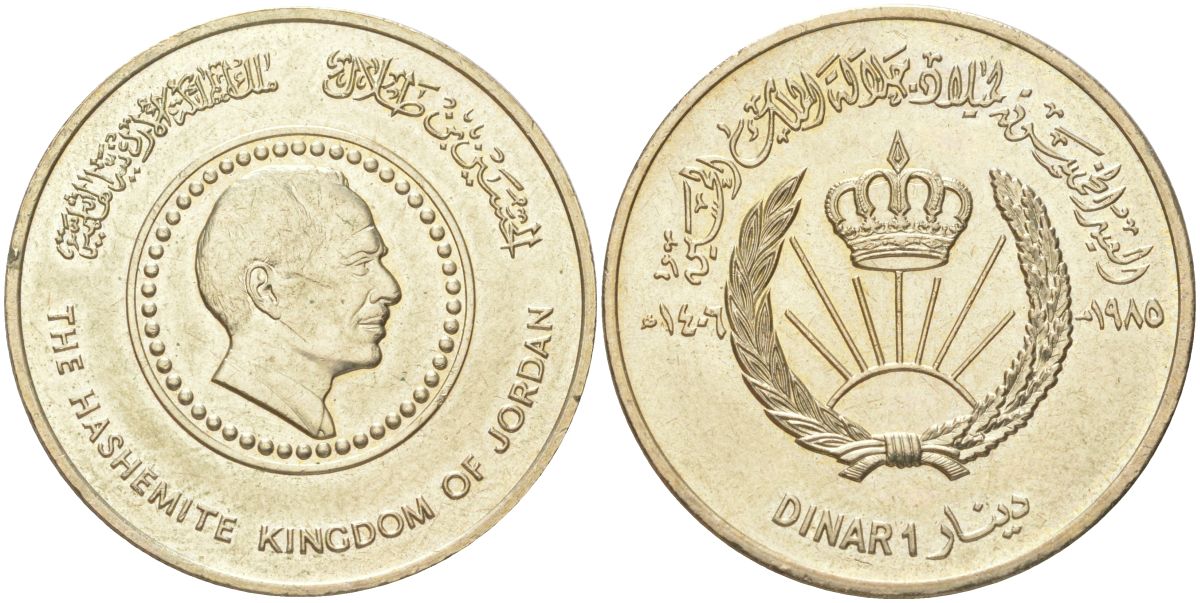 ----Иордания 1 динар 1985 50 лет со дня рождения Короля Хусейна ибн Талала KM 47 никель бронза aUNC 4162-646