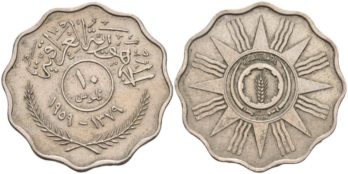 Ирак 10 филсов 1959 АН1379 KM 121 медно-никель 181-652