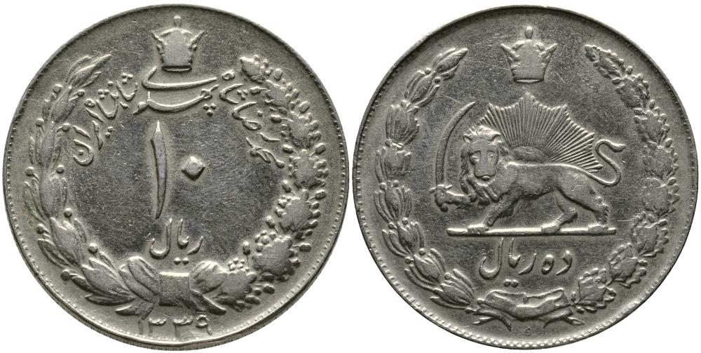 ИРАН 10 РИАЛОВ 1960 SH 1339 KM 1177 медно-никель 4542-635