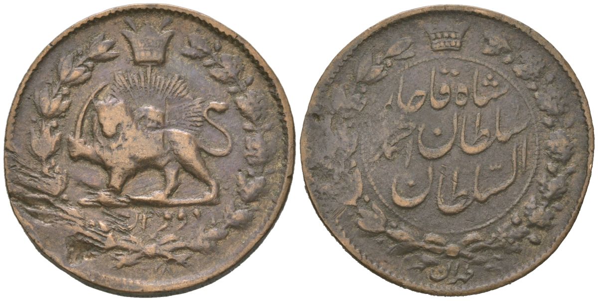 Иран 2000 динар 1919 подделка для обращения тип KM 1040 бронза 98-515