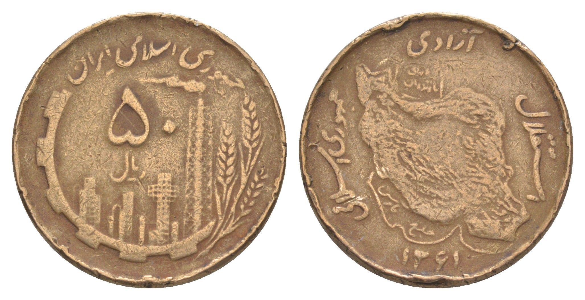 Иран 50 риалов 1982 SH 1361 KM 1237.1 алюминиевая бронза 4159-1245