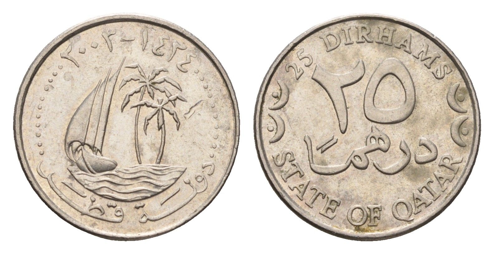 -Катар 25 дирхамов 2003 KM 8 медно-никель 4674-635Нидерландская ИндияАфганистанТиморТурцияФилиппиныШри-Ланка (Цейлон)ЯпонияЮжная АравияАрменияАзербайджанСтрейтс-СетлментсБангладешБрунейКамбоджаОбъединенные Арабские ЭмиратыТайваньФранцузский ИндокитайСаудовская АравияСаравакУзбекистанЕдиная КореяМолдавия (Молдова)КиргизияКазахстанГрузияТуркменияТибетТаджикистанЮжная КореяБахрейнБирма (Мьянма)БутанВьетнамГонконгИзраильИндияИндонезияИорданияИракИранЙеменКитайСеверная КореяТаиландКувейтЛаосЛиванМакаоМалайзияМальдивыМонголияНепалОманПакистанСингапурСирияДругие страны