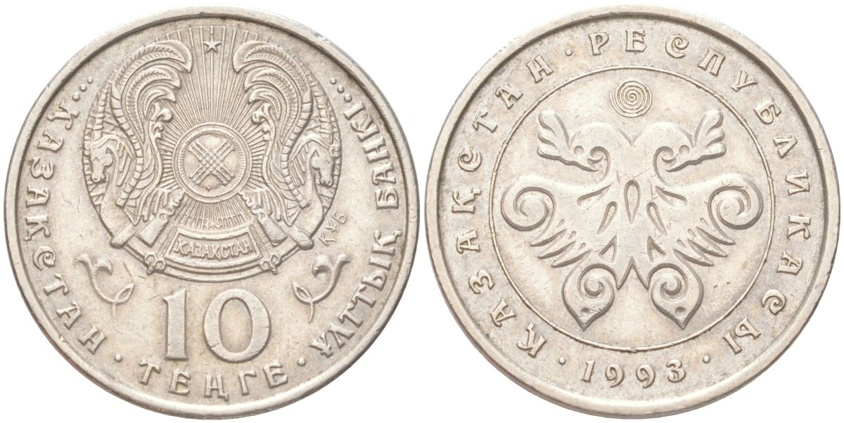 Казахстан 10 тенге 1993 KM 10 нейзильбер 4141-1031
