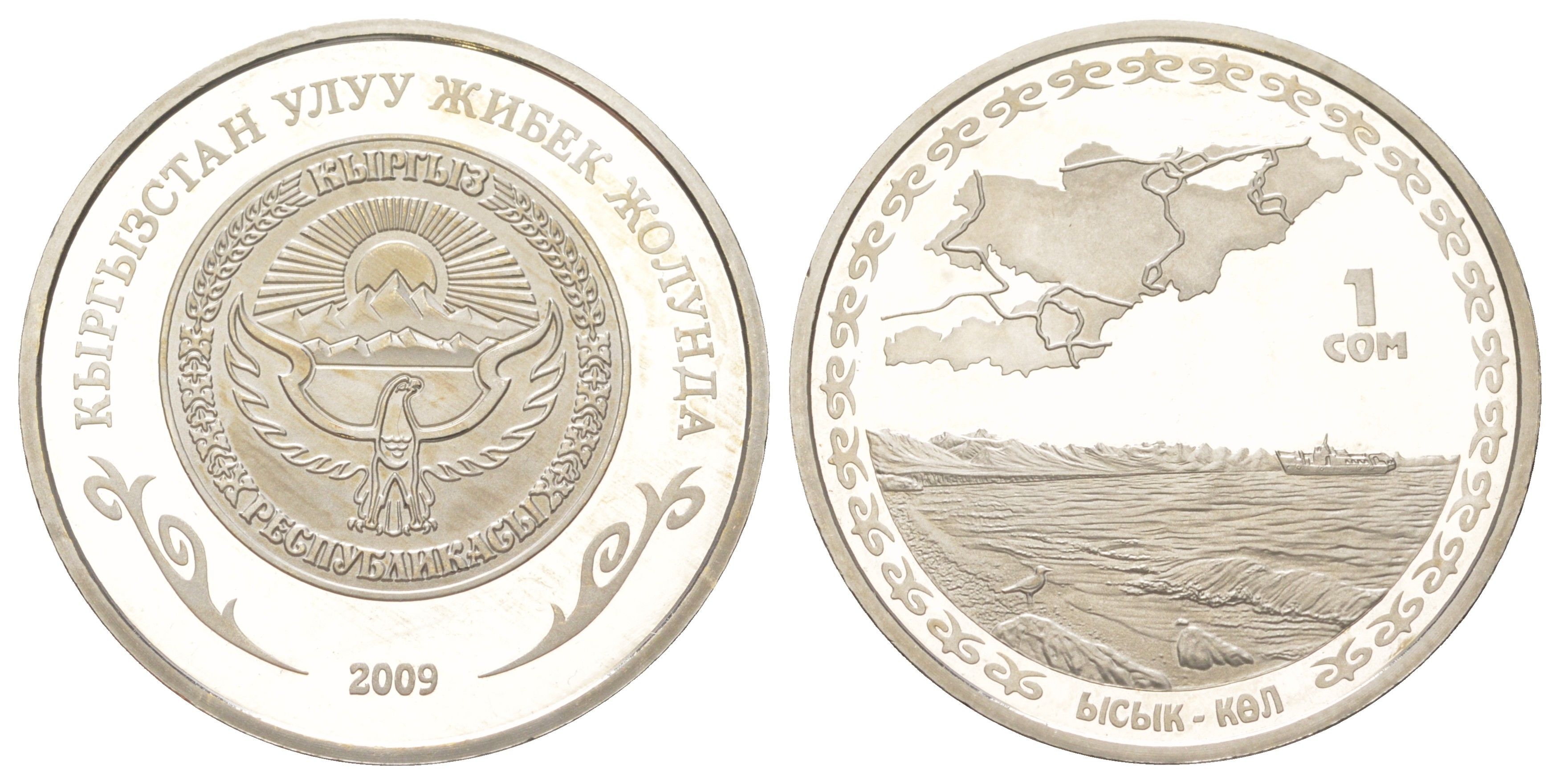 Киргизия 1 сом 2009 Великий Шёлковый путь - Озеро Иссык-Куль, тираж 5.000 экземпляров KM 33 медно-никель PROOF 3896-333