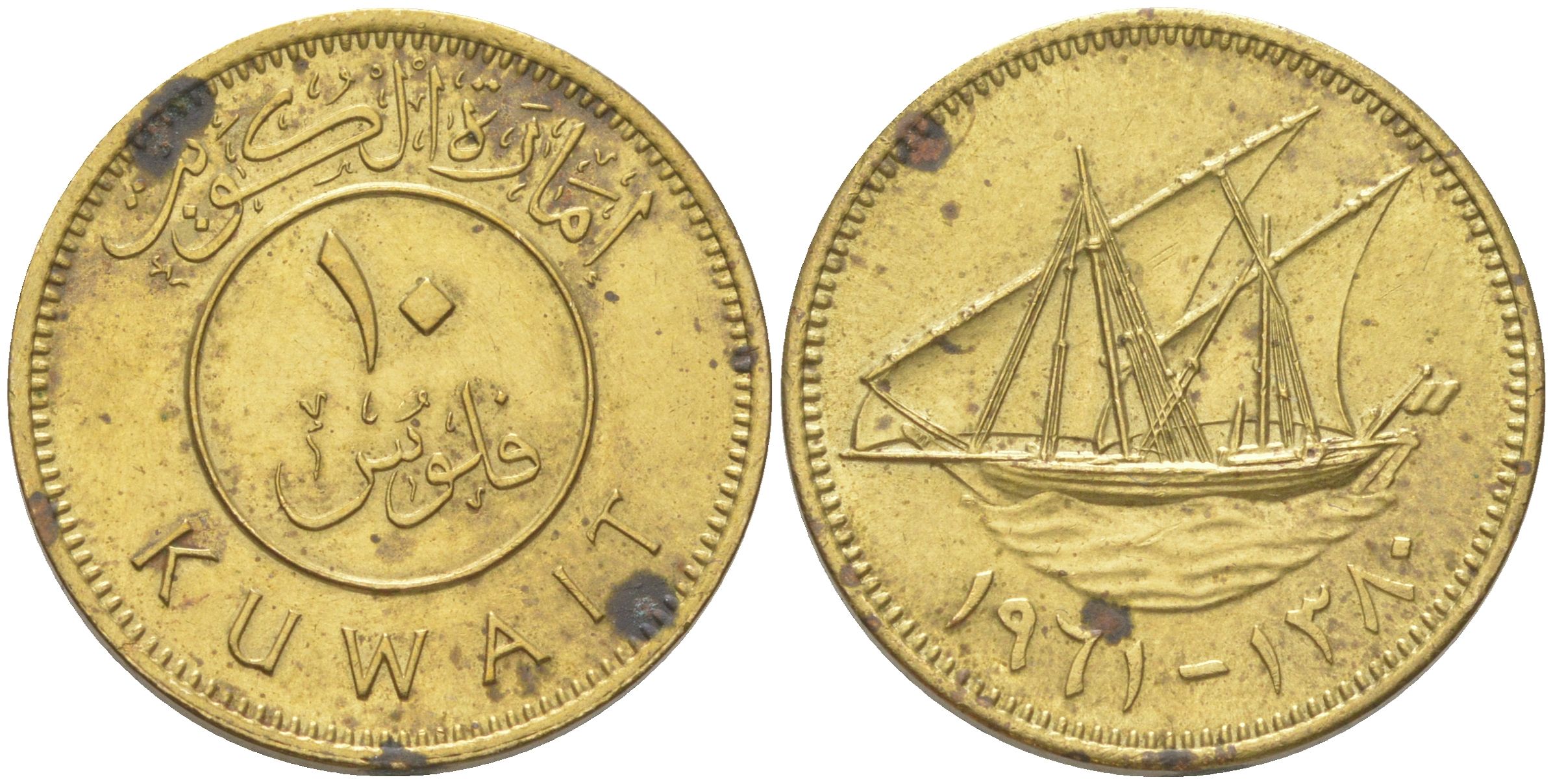 Кувейт 10 филсов 1961 KM 3 никель латунь aUNC 4621-858
