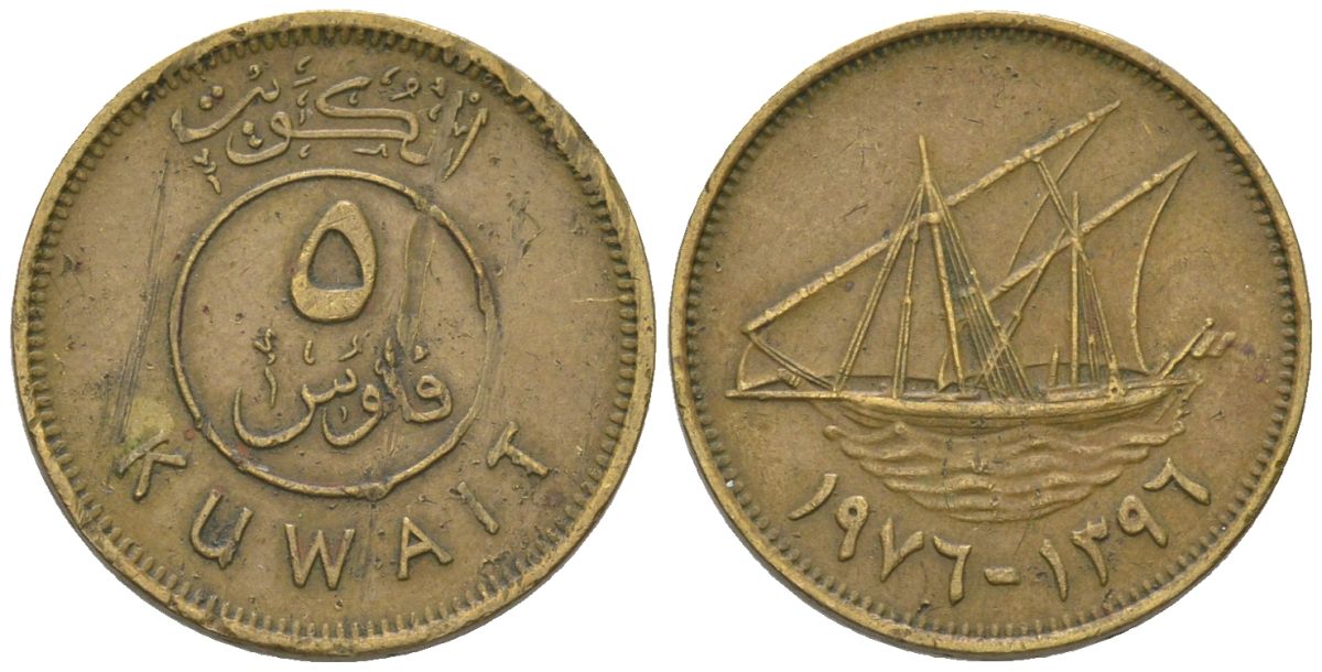 Кувейт 5 филсов 1976 KM 10 никель латунь 4547-315
