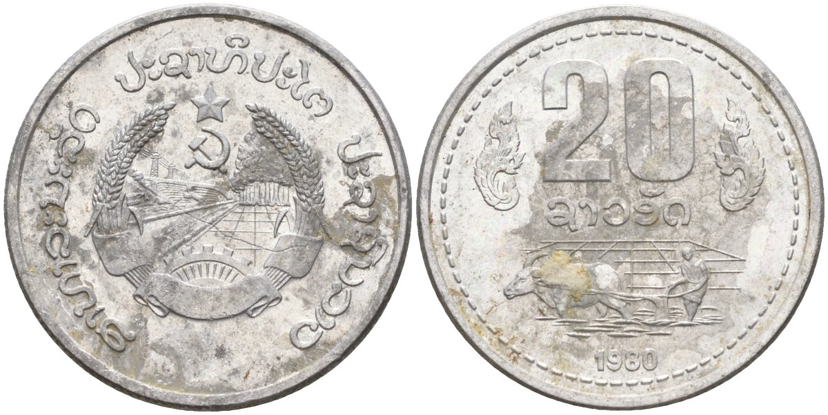 Лаос 20 атт 1980 год тип KM 23 алюминий 4132-1052