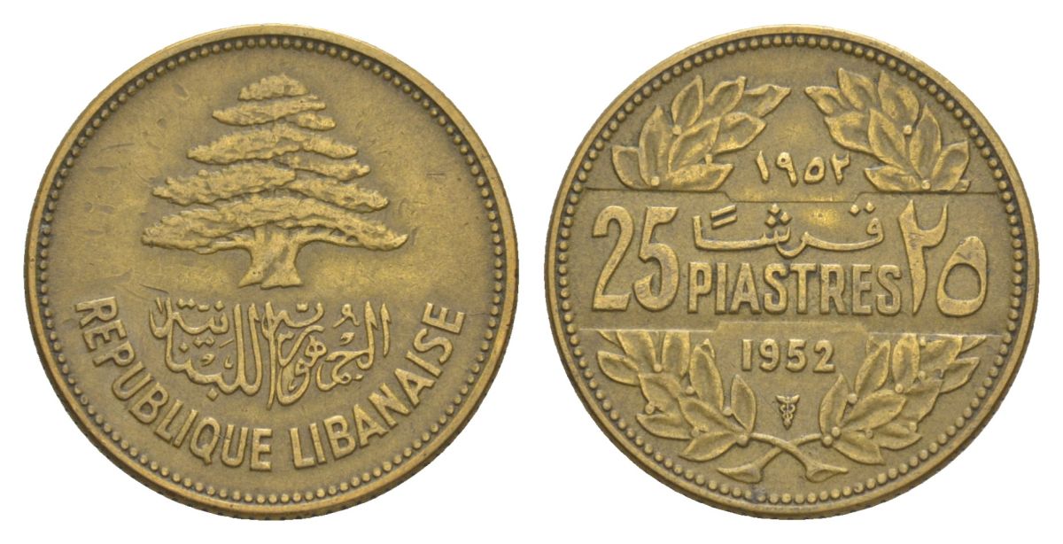 ----Ливан 25 пиастров 1952 кедровое дерево KM 16 алюминиевая бронза 27-936