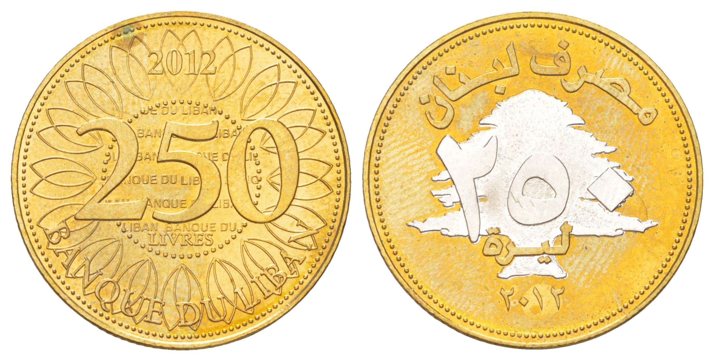 ----Ливан 250 ливров 2012 Счастливая монета KM 36a медь алюминий никель BU 4612-917