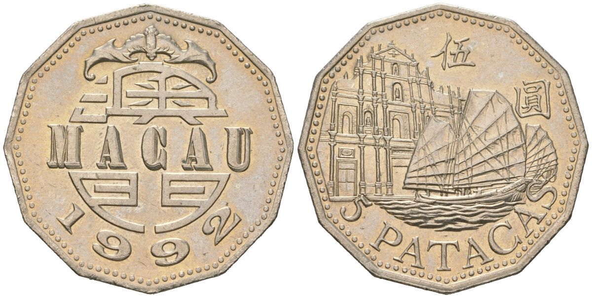 Макао 5 патак 1992 KM 56 медно-никель aUNC 4582-315