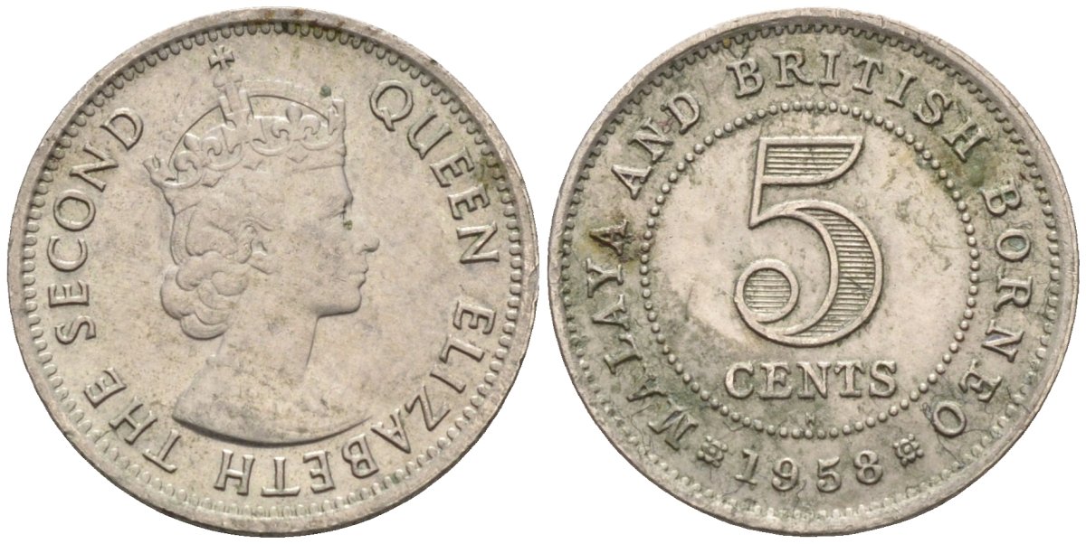 Малайя и Британское Борнео 5 центов 1958 Елизавета II (1952-) KM 1 медно-никель 4585-111